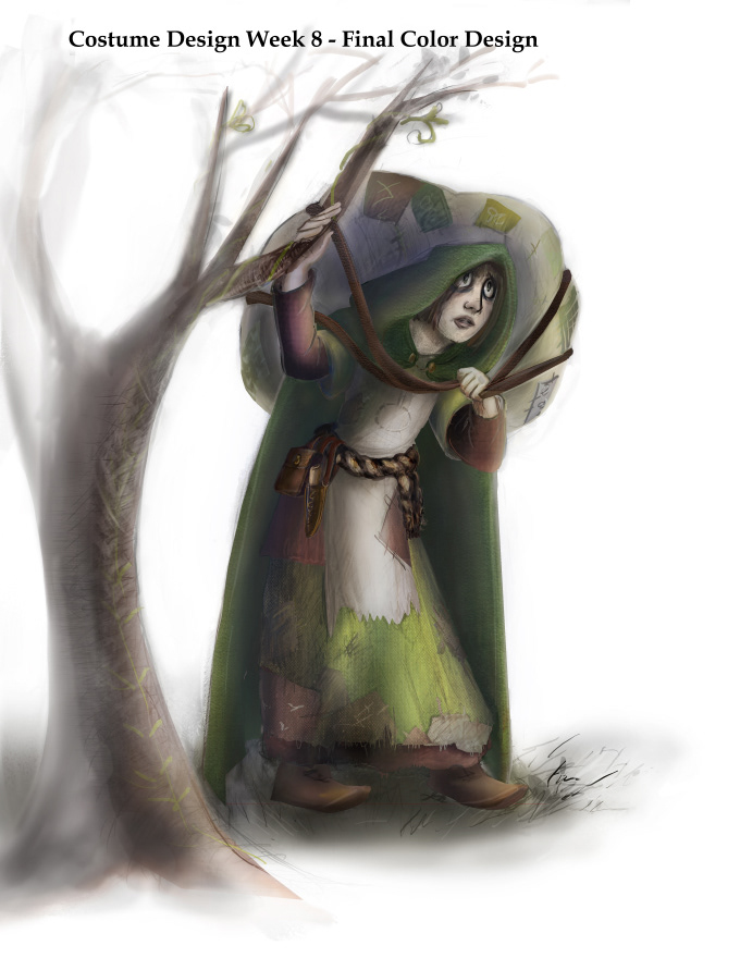 A project I did for my Costume Design class last year, designing the final color costume of my character, little Olivette. I tracked the story of my character through her very interesting and rough childhood, and this was the fruit of my efforts. I really learned a lot from this class, and felt quite at home doing the work for it. It was very interesting to explore the works of costume design, and it makes me interested to consider pursuing it as a possible avenue in the future!
